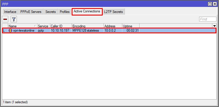 3. Selesai, untuk melihat user yang terhubung melalui VPN pilih Active Connection