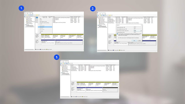 Untuk membuat dan membagi harddisk / ssd menjadi beberapa partisi, pastikan kapasitas partisi yang ingin diambil sebagian kapasitasnya mencukupi.