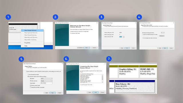 - Klik kanan lalu New Simple Volume